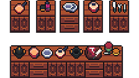 Now we have cabinets with drawers that open and close. I've also added three types of utensils: Cutlery; Meat preparation; Jar of pickles, honey, and a knife. Now all assets are free...